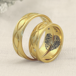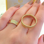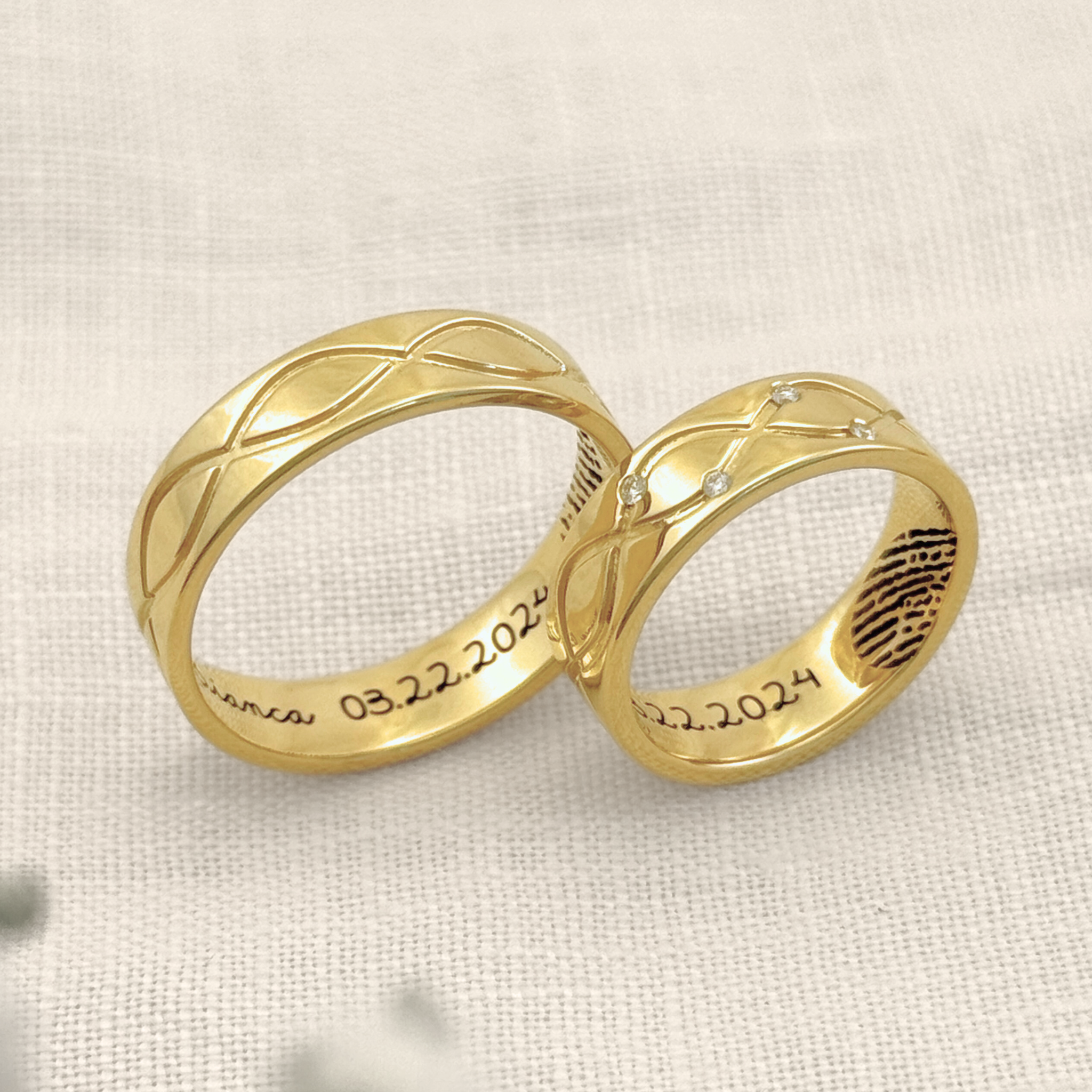 Par de Alianças Infinito - Ouro 18k - Uma aliança cravejada