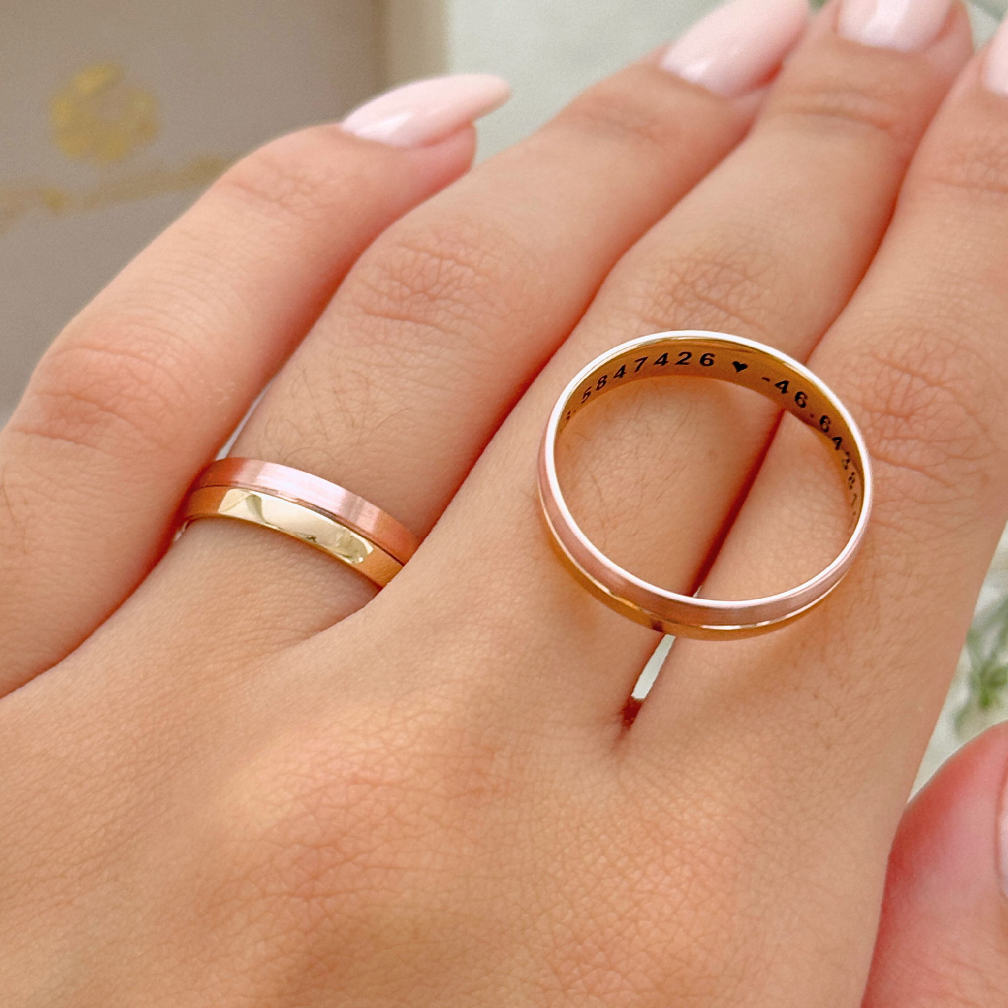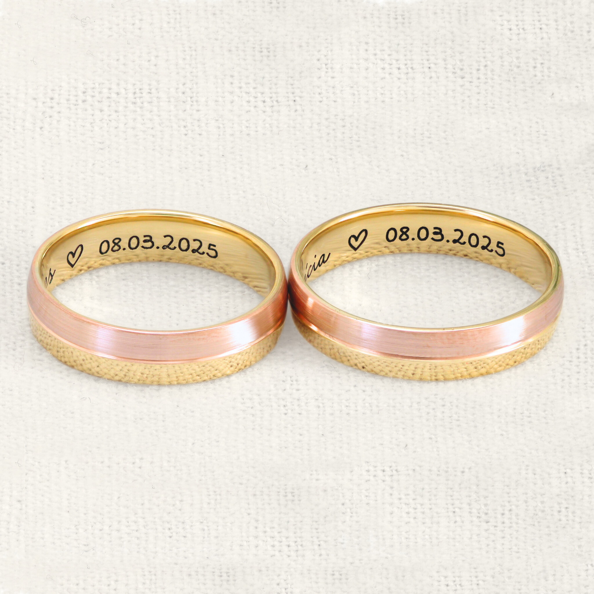 Par de Alianças Pau-Brasil Ouro Amarelo e Rosé 18k