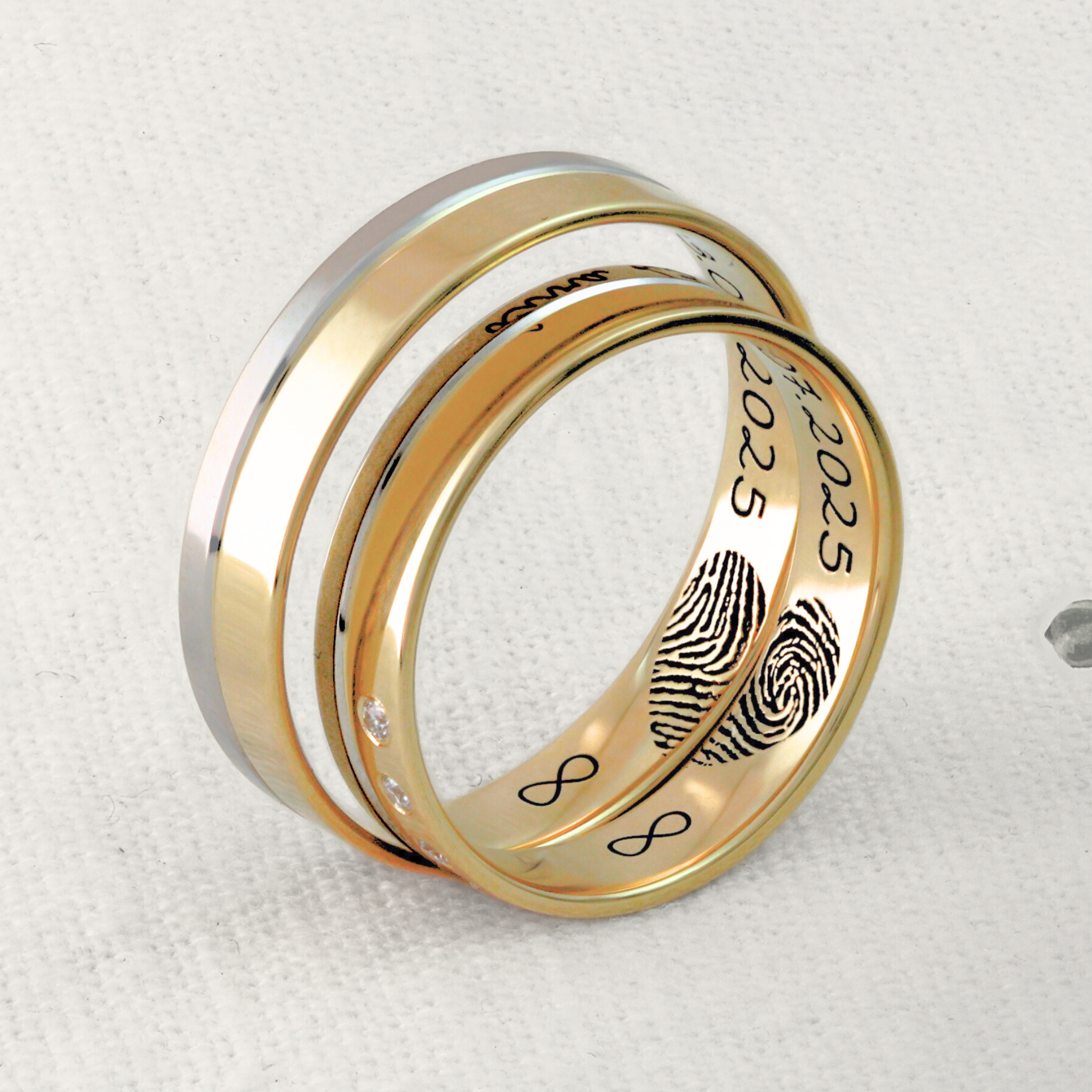 Elas são feitas em ouro 18k e seu design foi pensado para representar esse marco tão importante na vida de um casal: suas bodas de prata. As alianças transmitem todo o seu amor e conexão, e os quatro diamantes (pedras naturais) ou pedras sintéticas (zircônias) dão um toque muito delicado à uma das alianças. Escolha no botão acima, qual dessas variações você deseja.