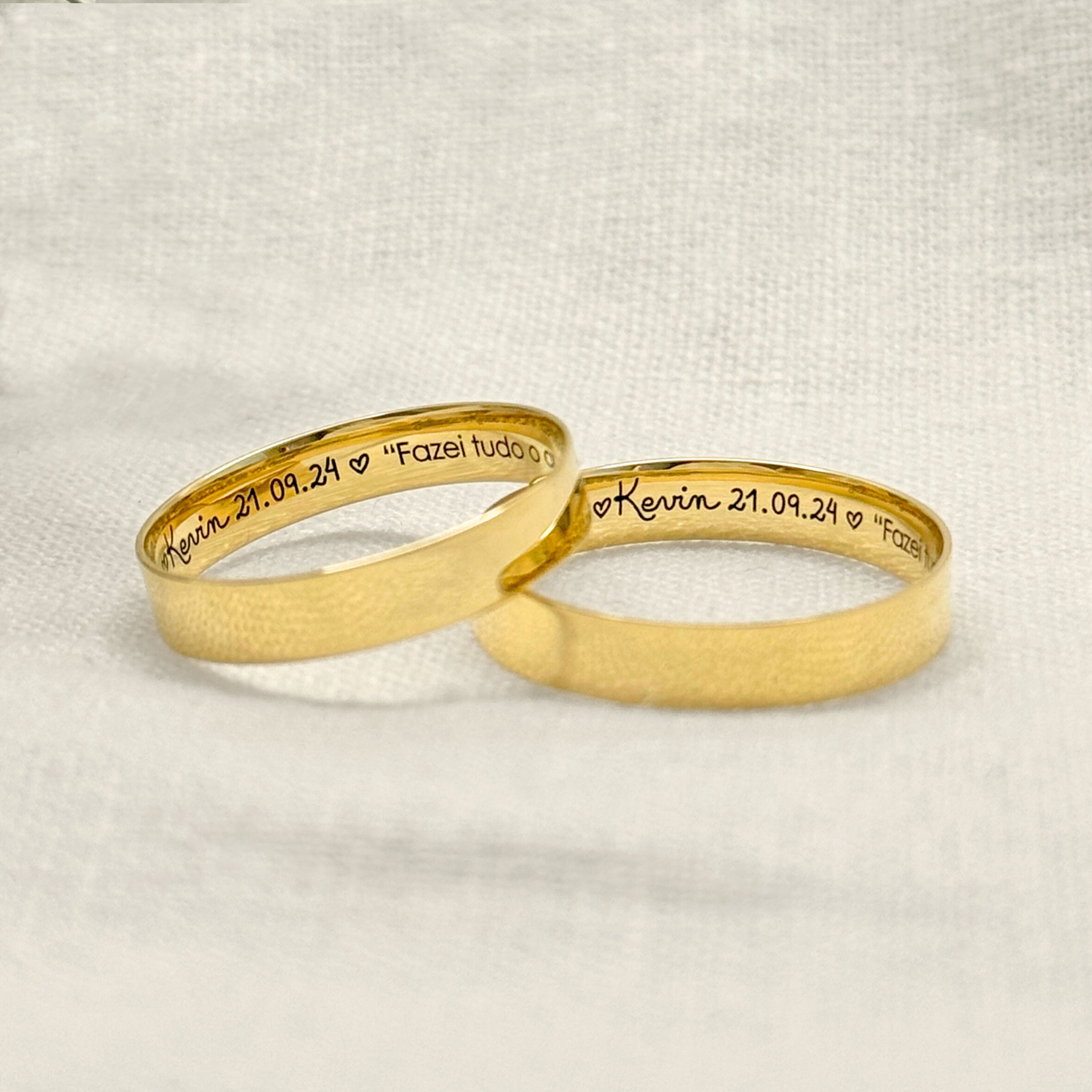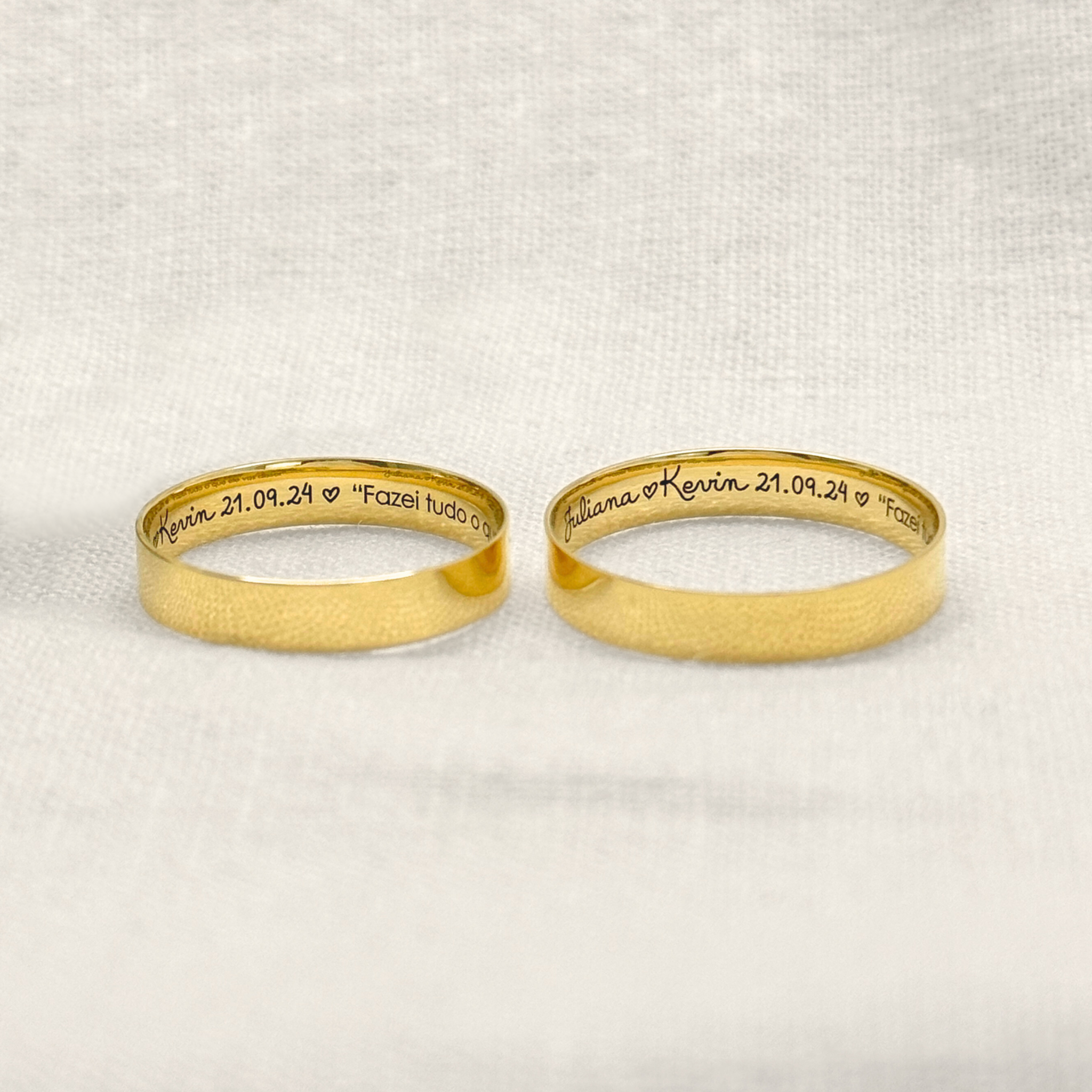 Elas são feitas em ouro 18k e seu design foi pensado para pessoas que buscam alianças minimalista, mas que transmitam todo o amor e conexão que há no arranjo matrimonial do casal.