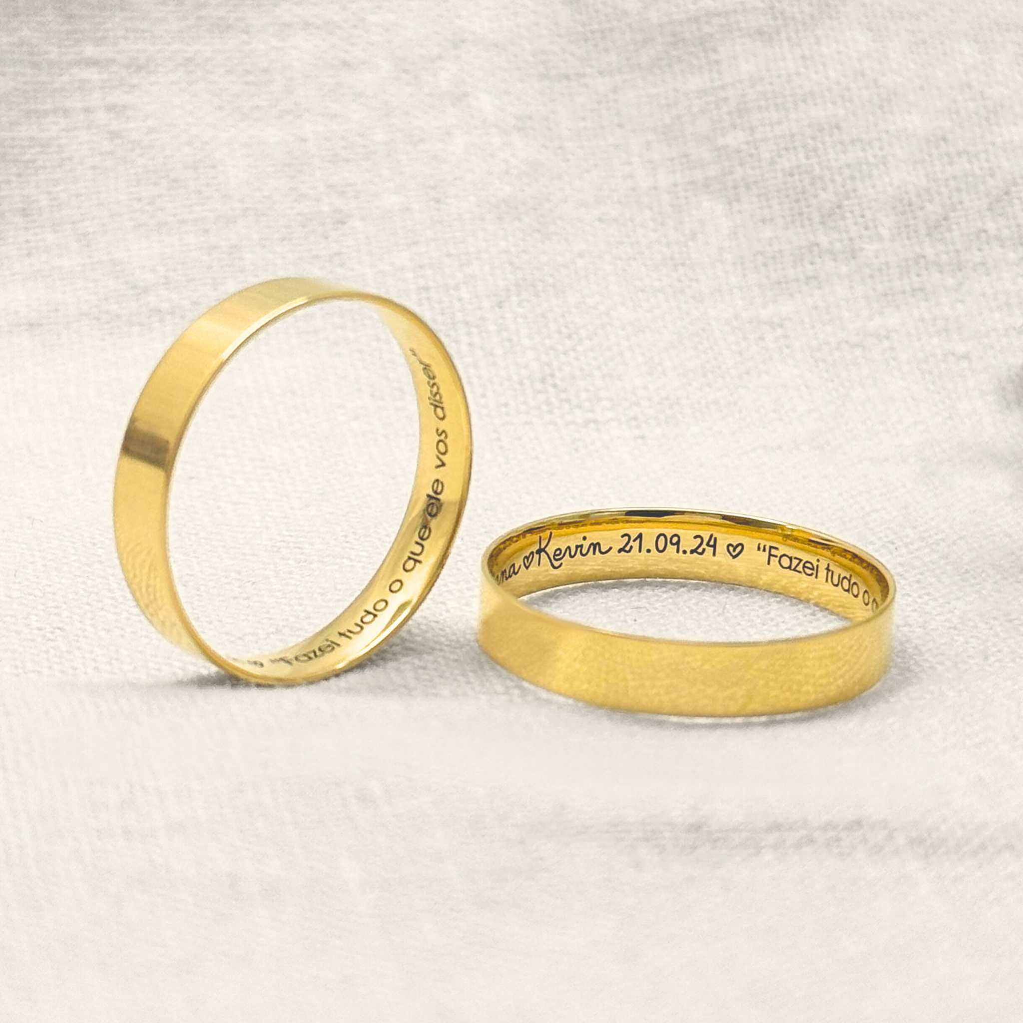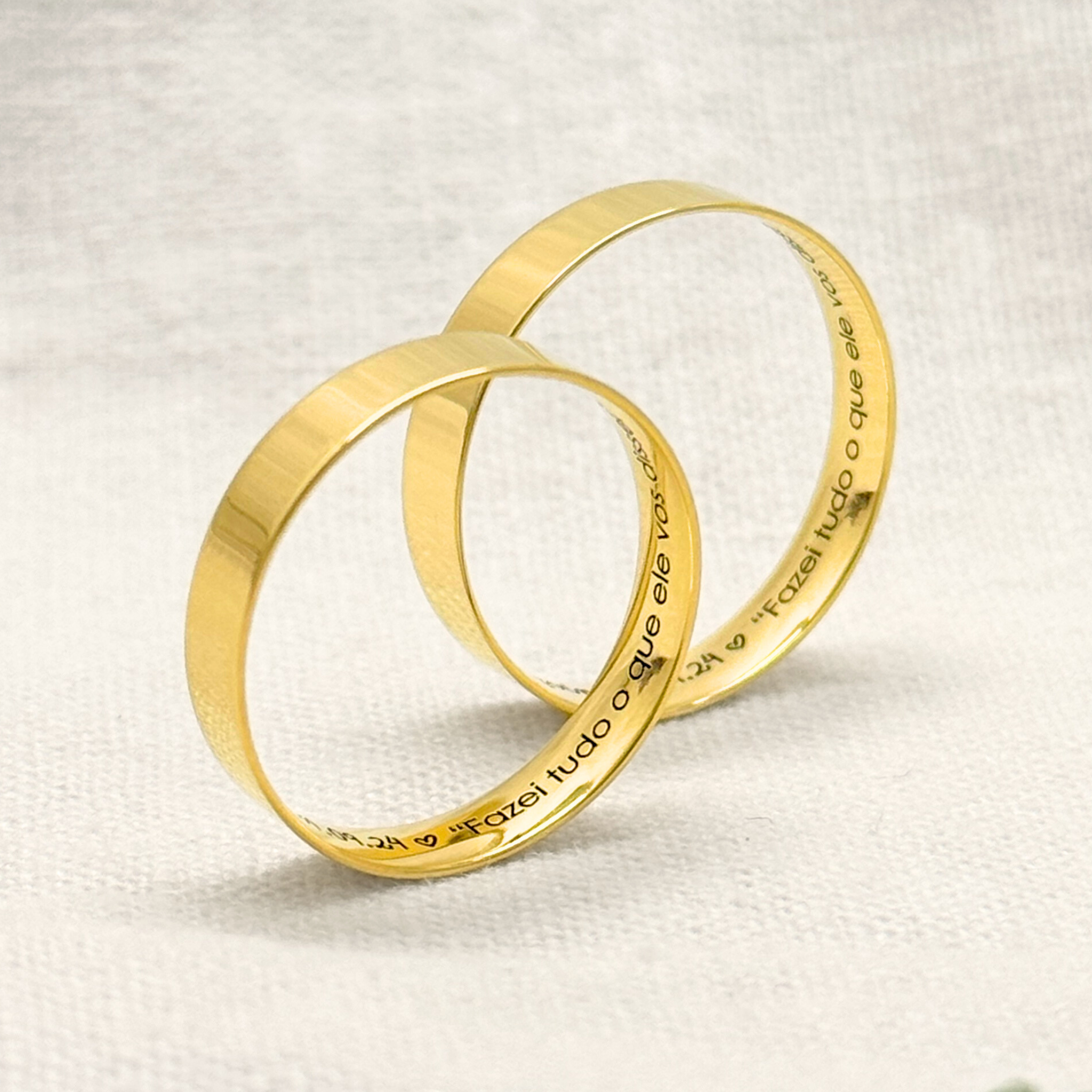 O par de alianças 'clean' é ideal para quem quer representar seus laços matrimoniais com muita sofisticação e estilo.