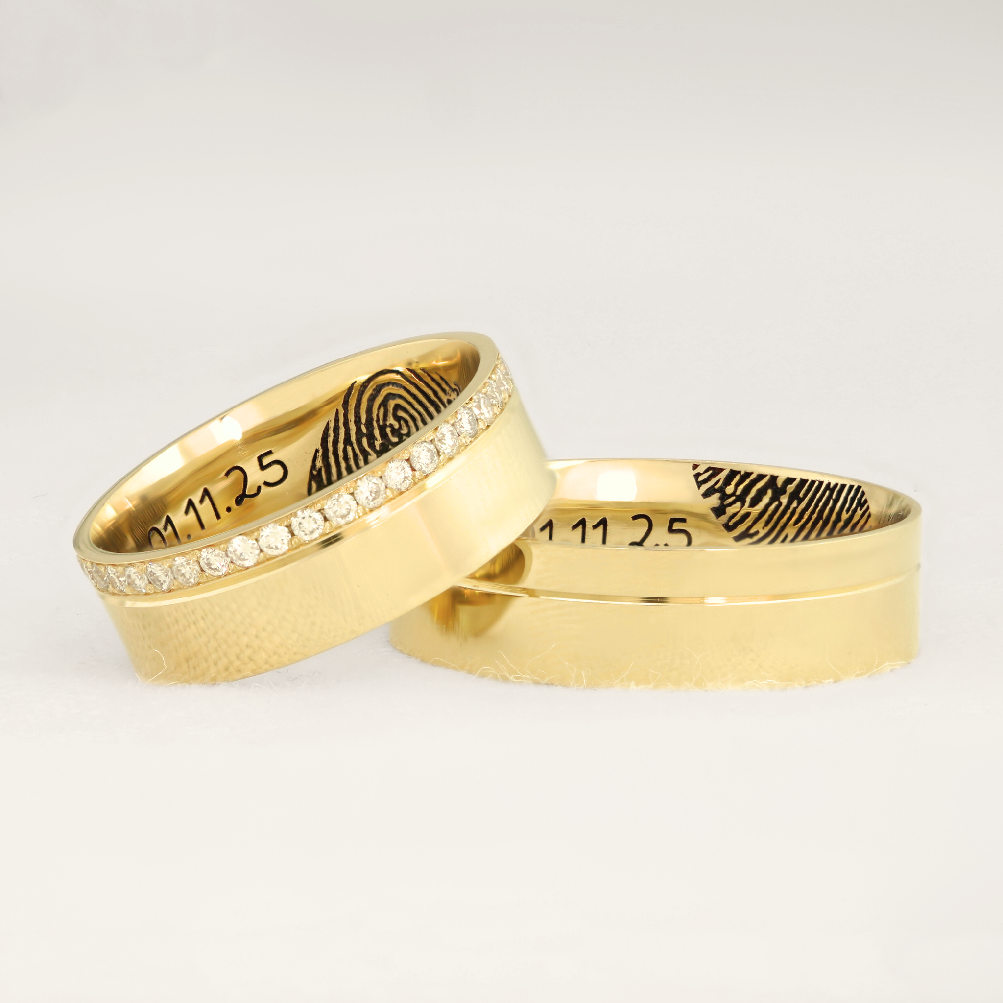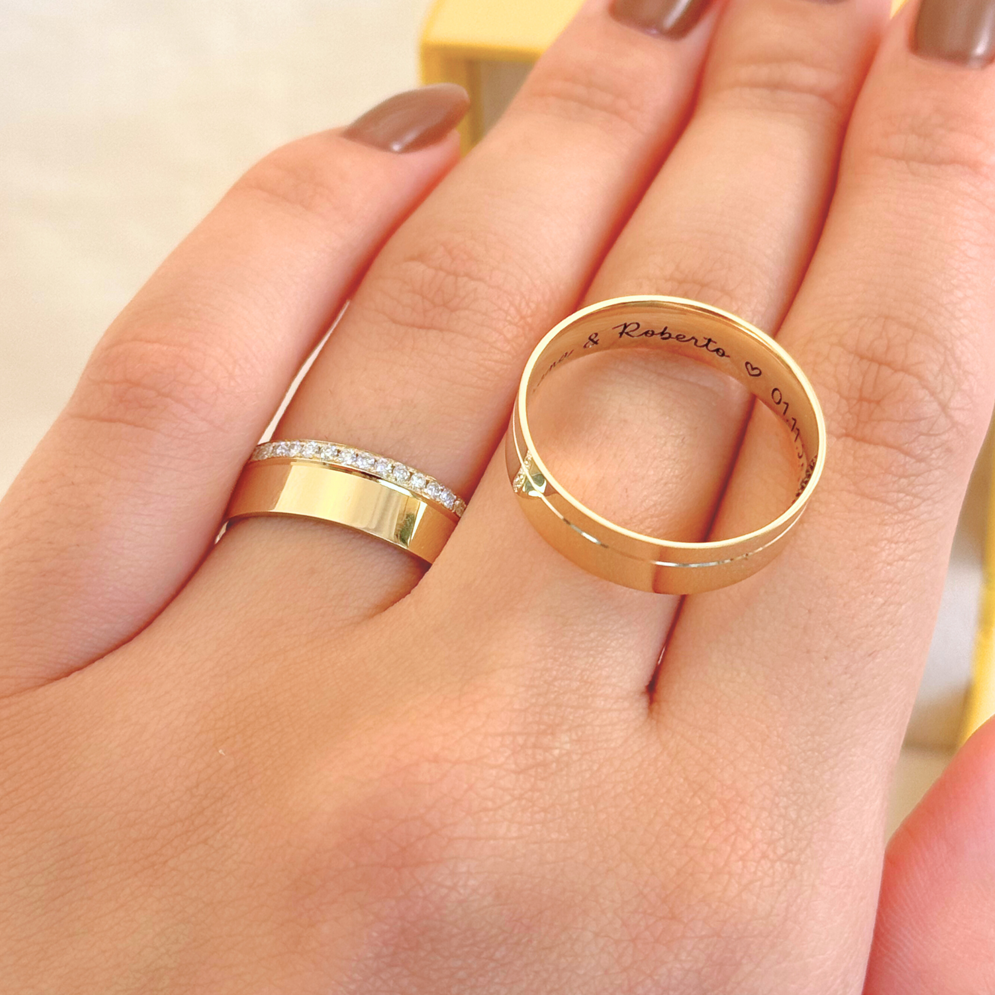 Par de Alianças Mônaco - Ouro 18k - Uma aliança com volta inteira cravejada