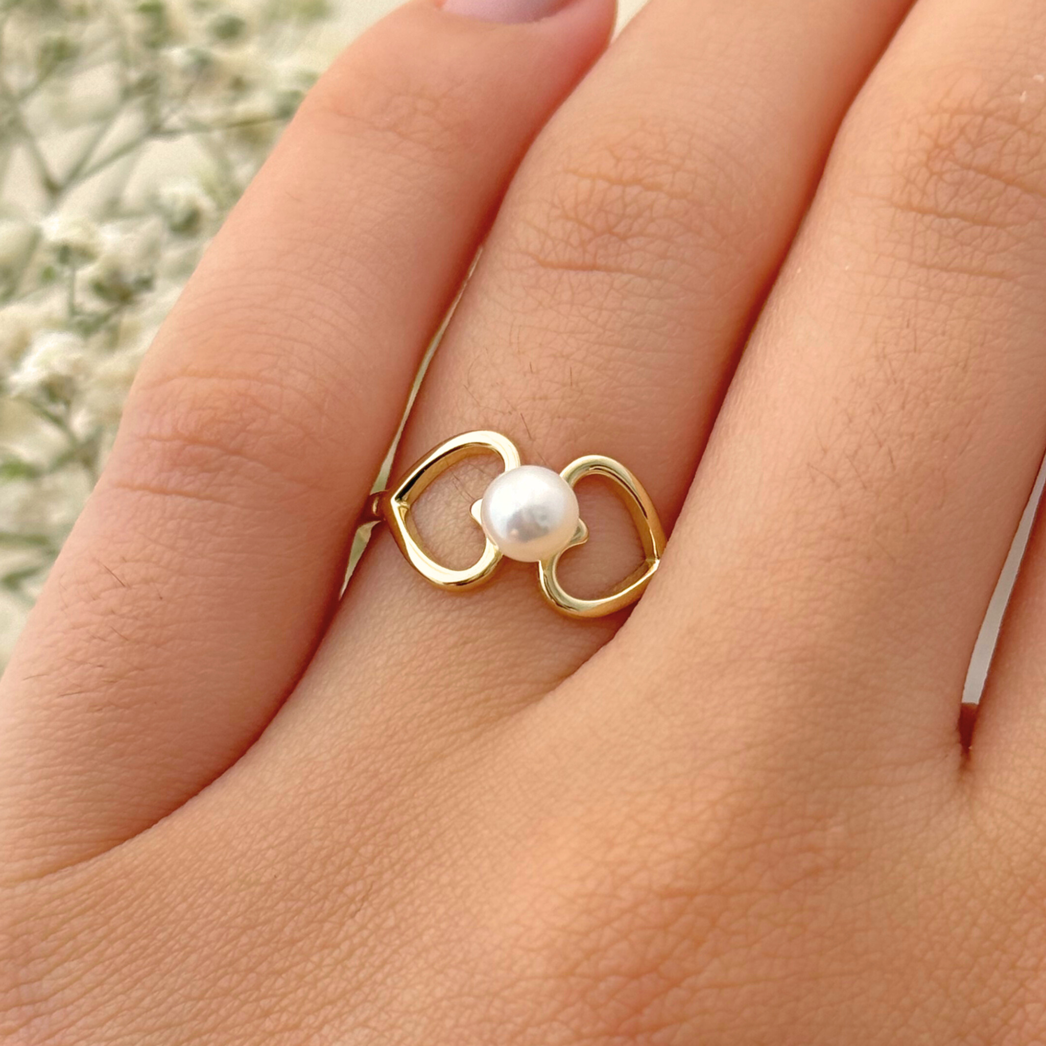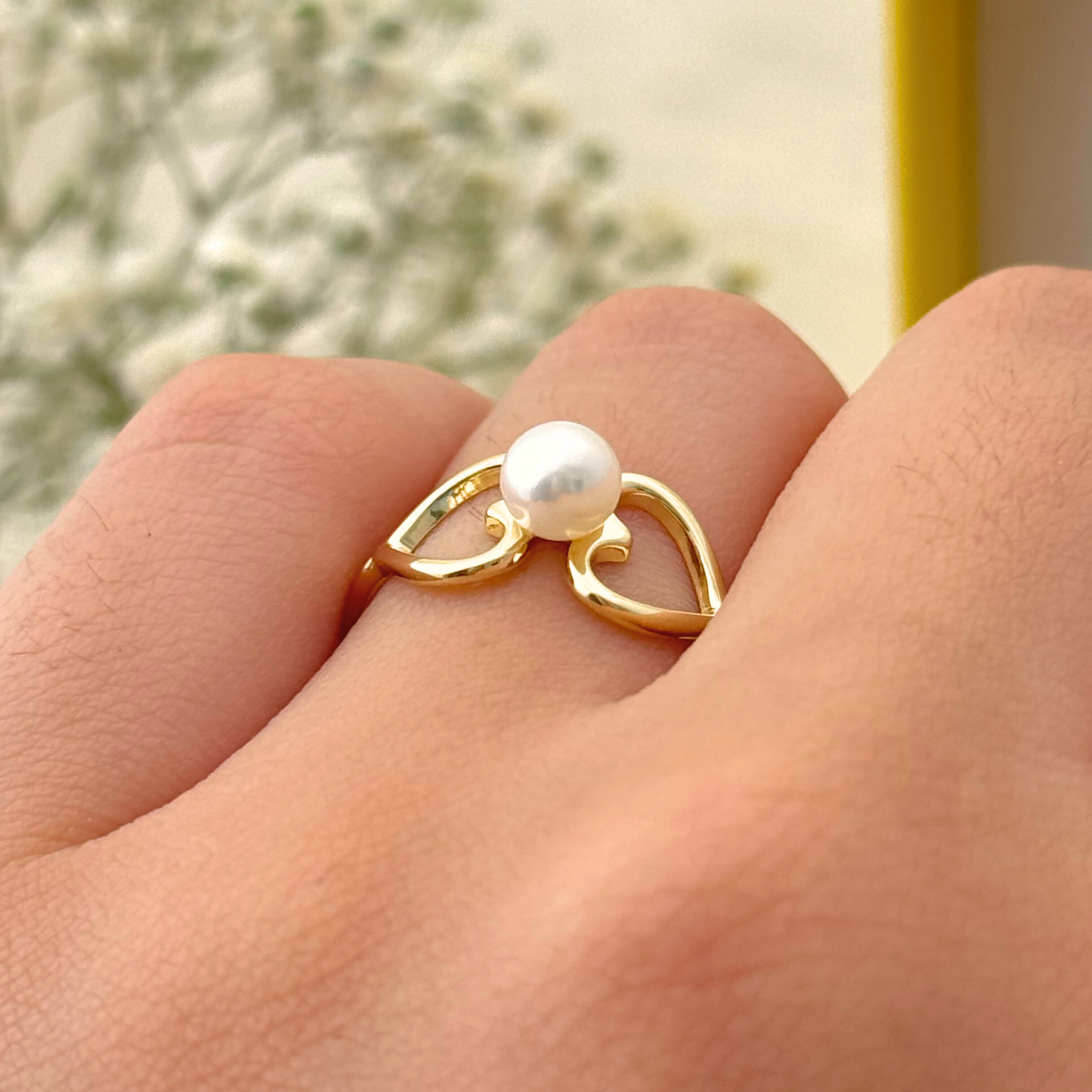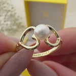 Anel Dois Corações - Ouro 18k - Pérola