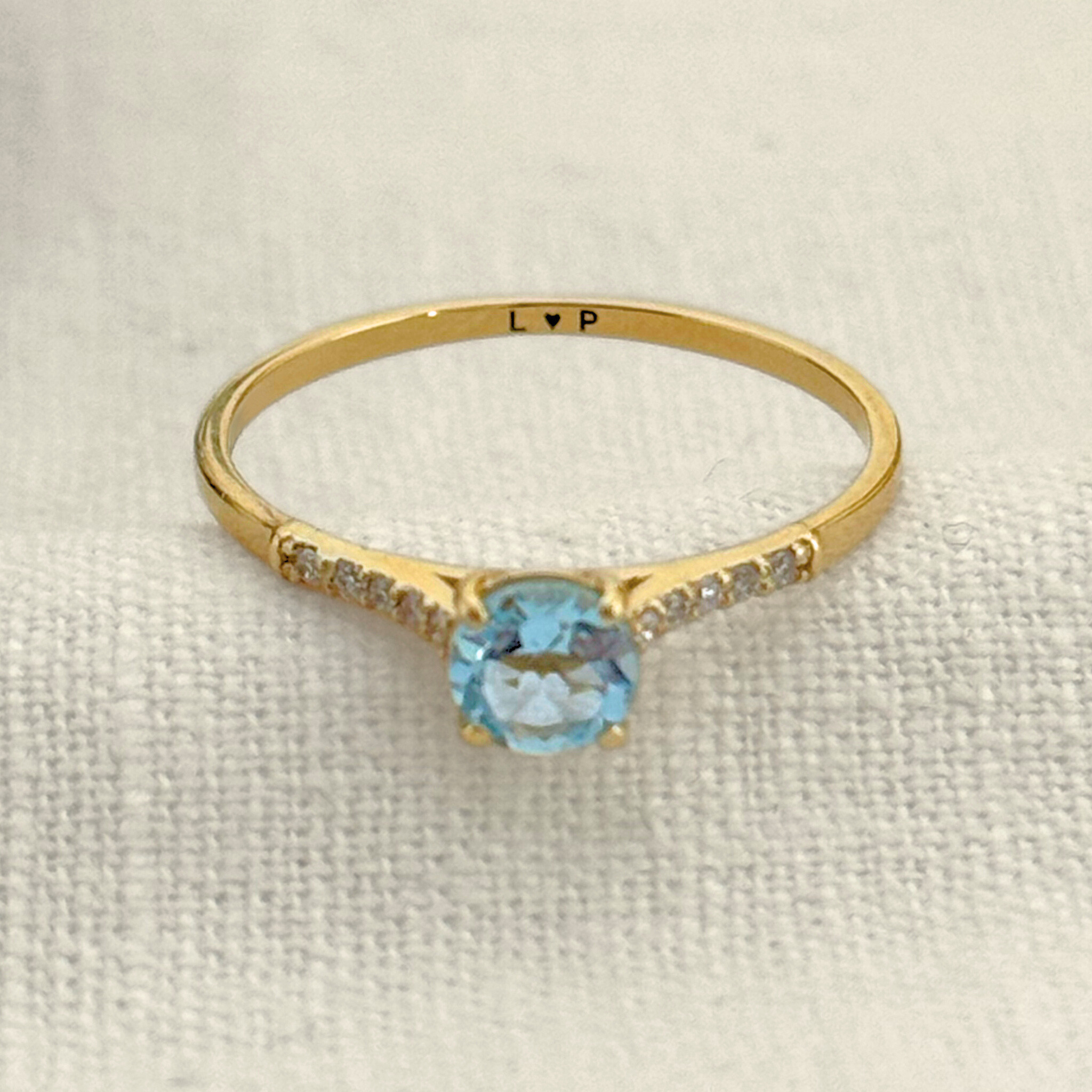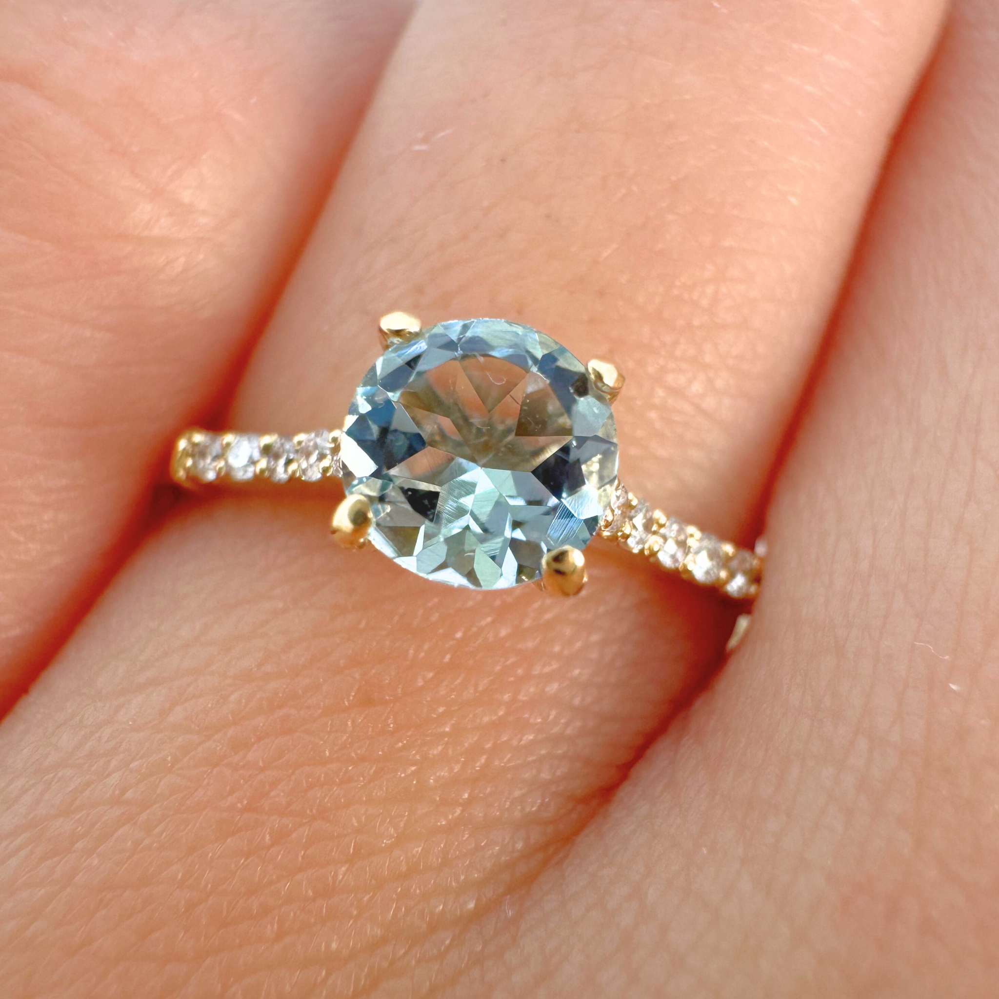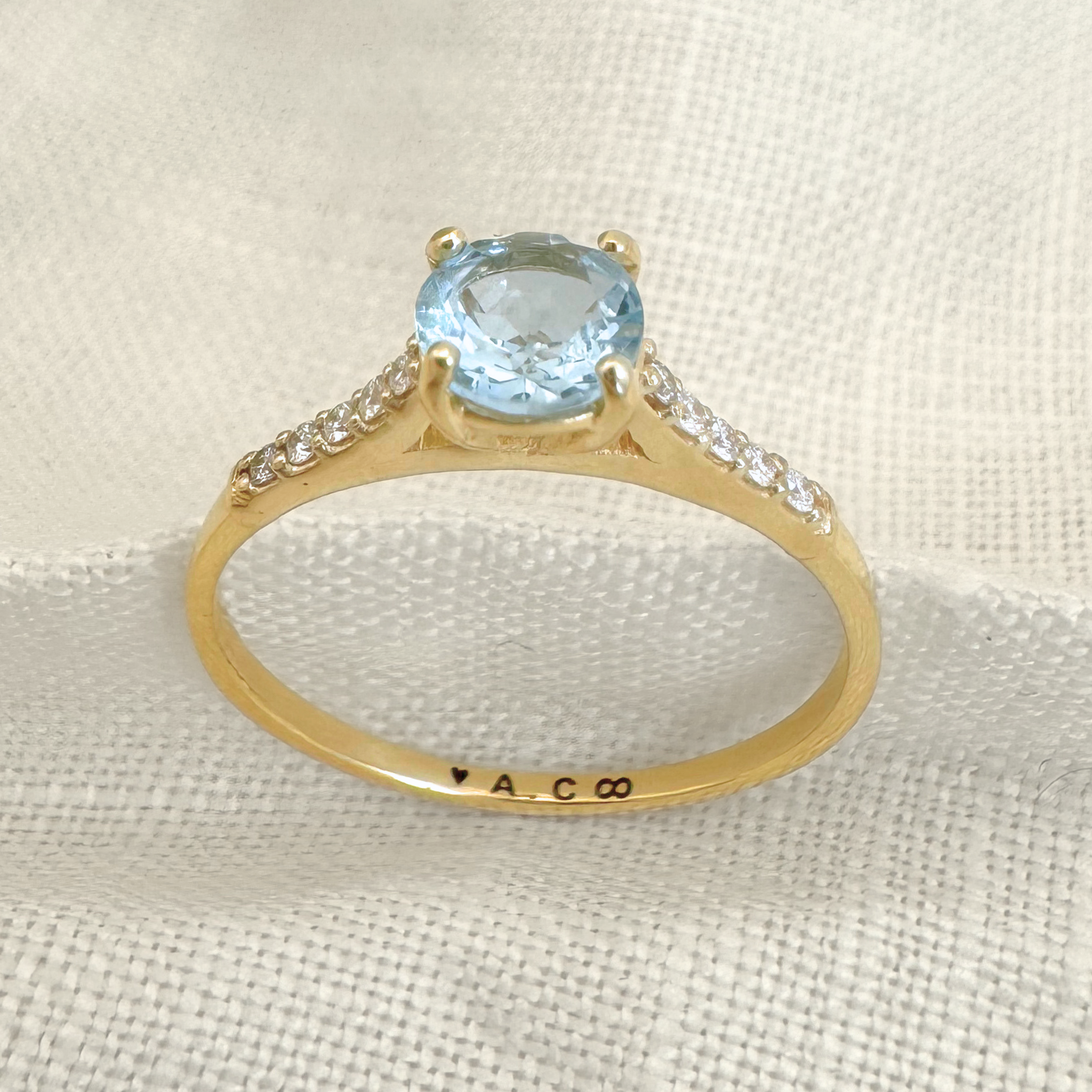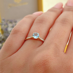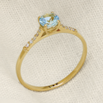 Anel Solitário Clássico - Ouro 18k - Água Marinha - Diamantes