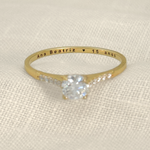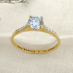 Nosso Solitário 'Clássico' é confeccionado em ouro amarelo 18k e adornado com pedras preciosas ou sintéticas. Com uma pedra de 5 milímetros no topo e cinco pedras de 1,1mm de cada lado, ele trás a clássico incolor e cria um visual belo e charmoso para quem aprecia joias com um toque único.
