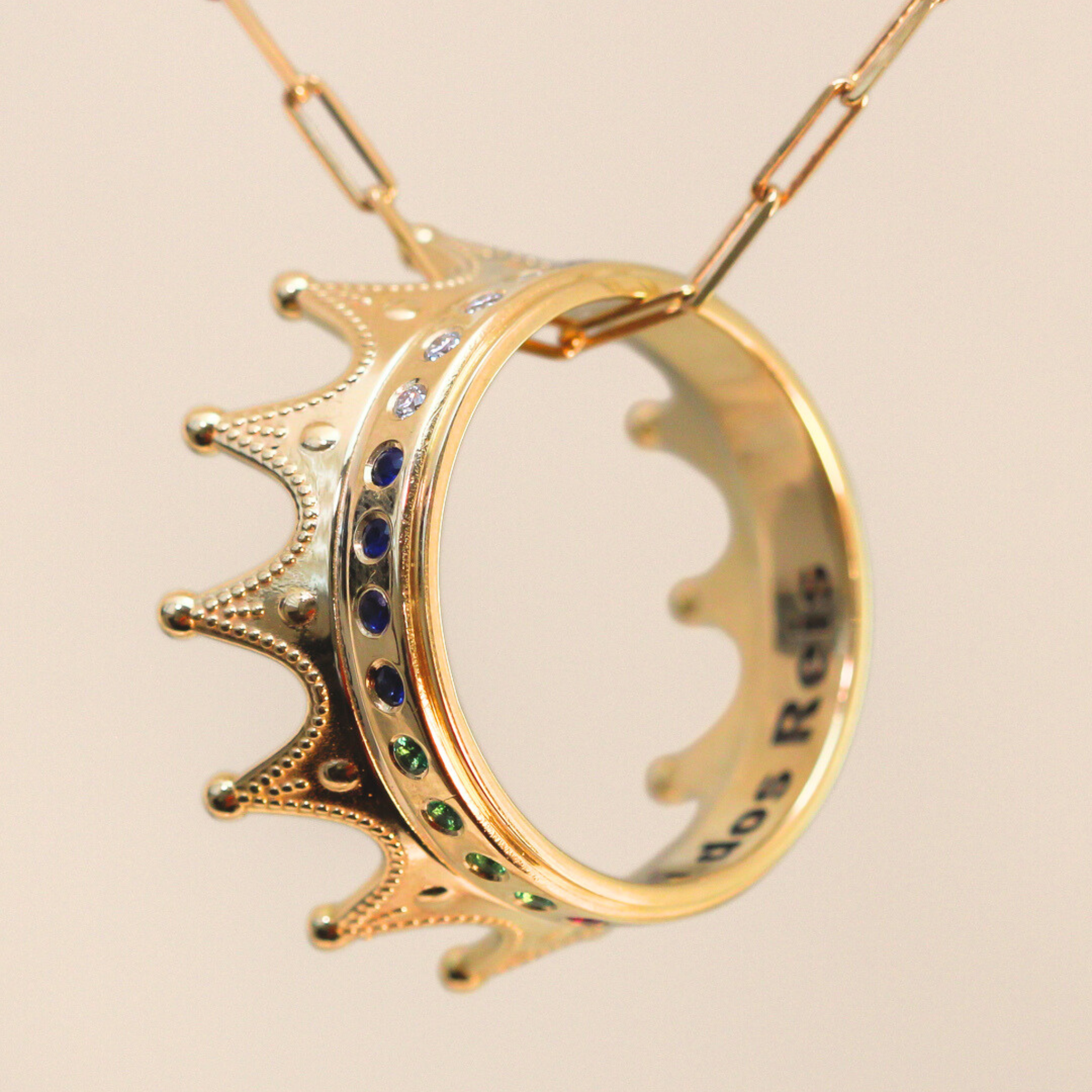 Pingente Coroa - Ouro 18k - Cravejado - DIAMANTES - RUBI - ESMERALDA - SAFIRA - GRANADA - AMETISTA
