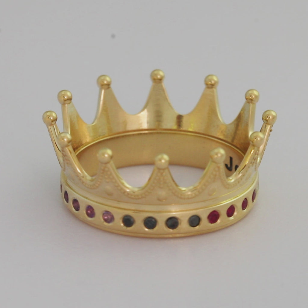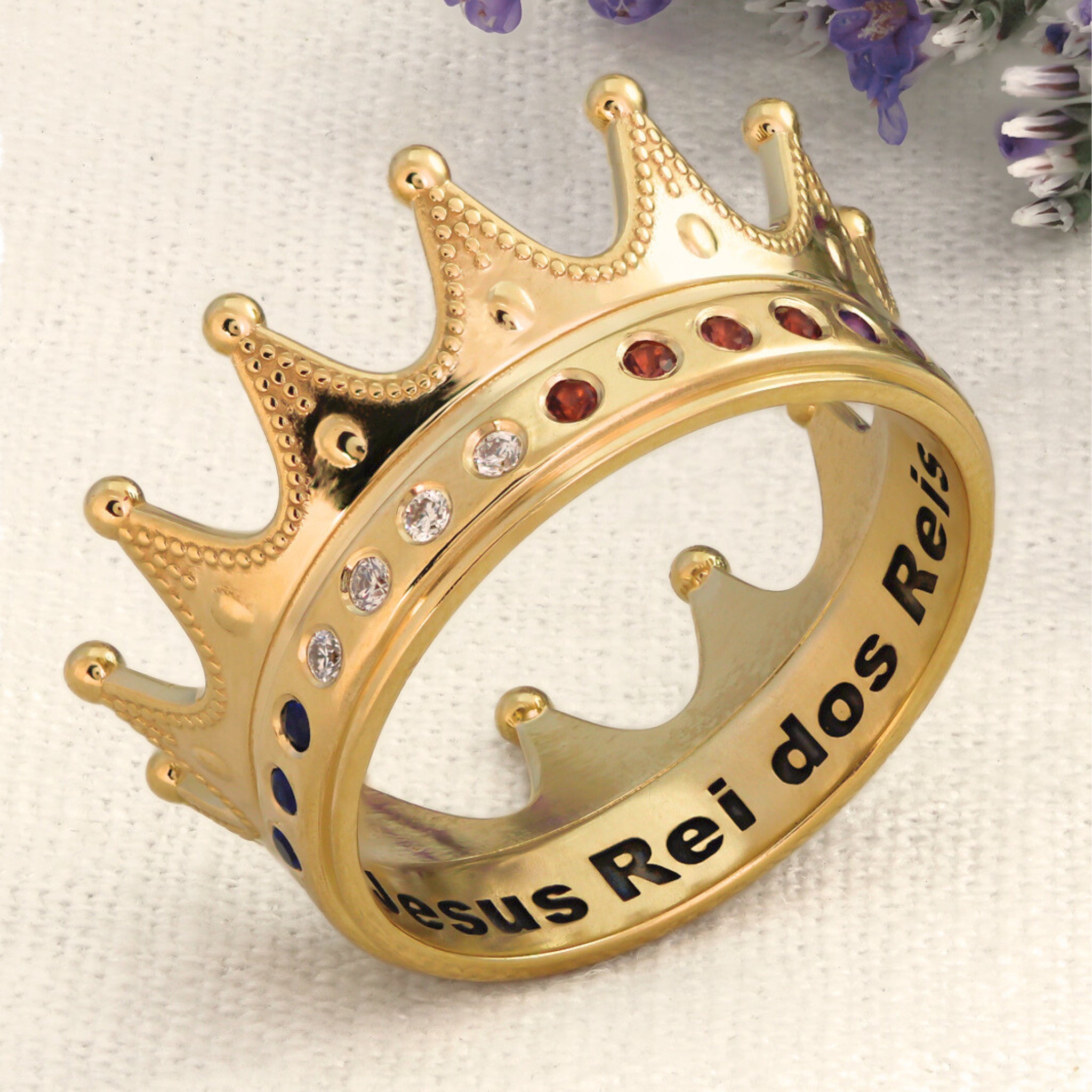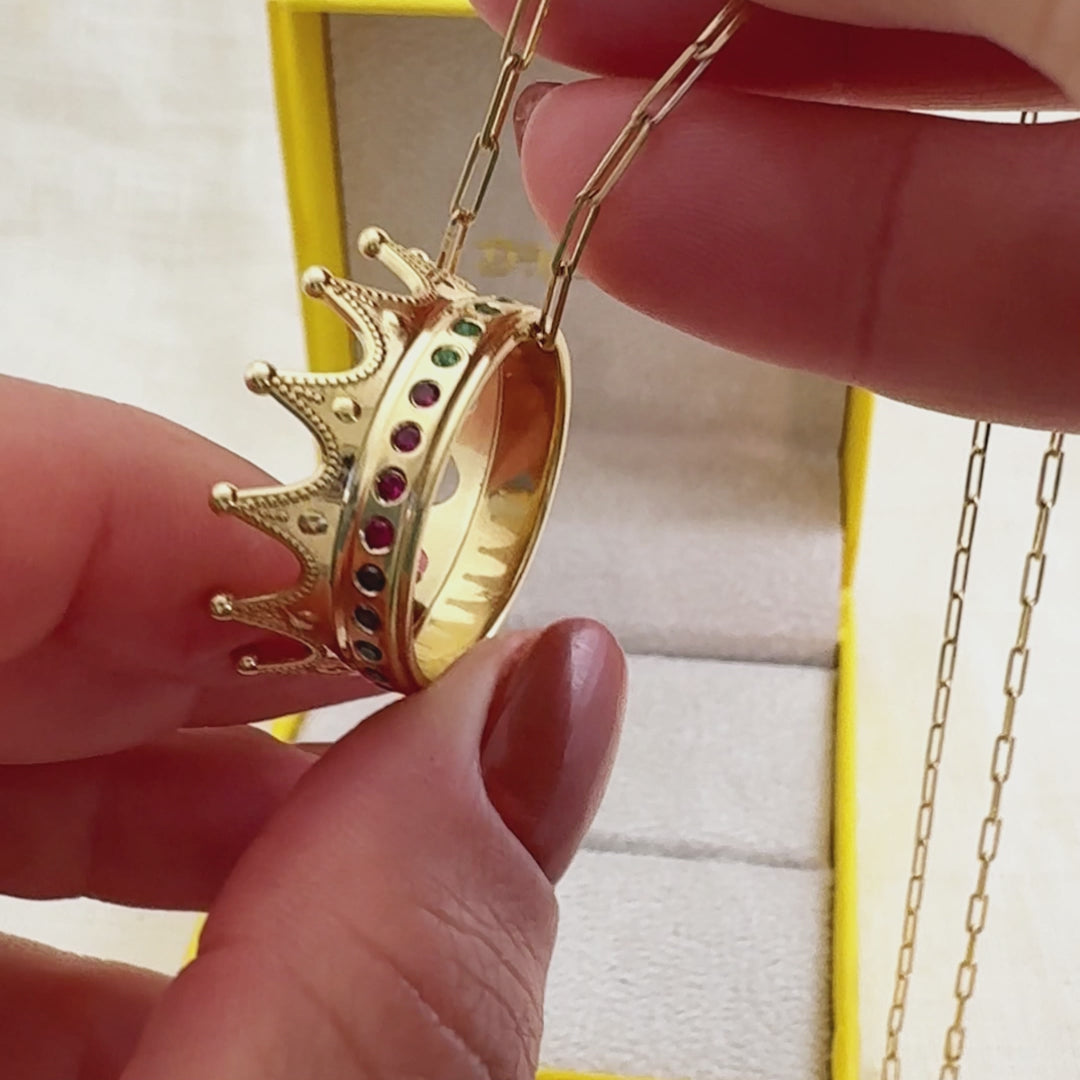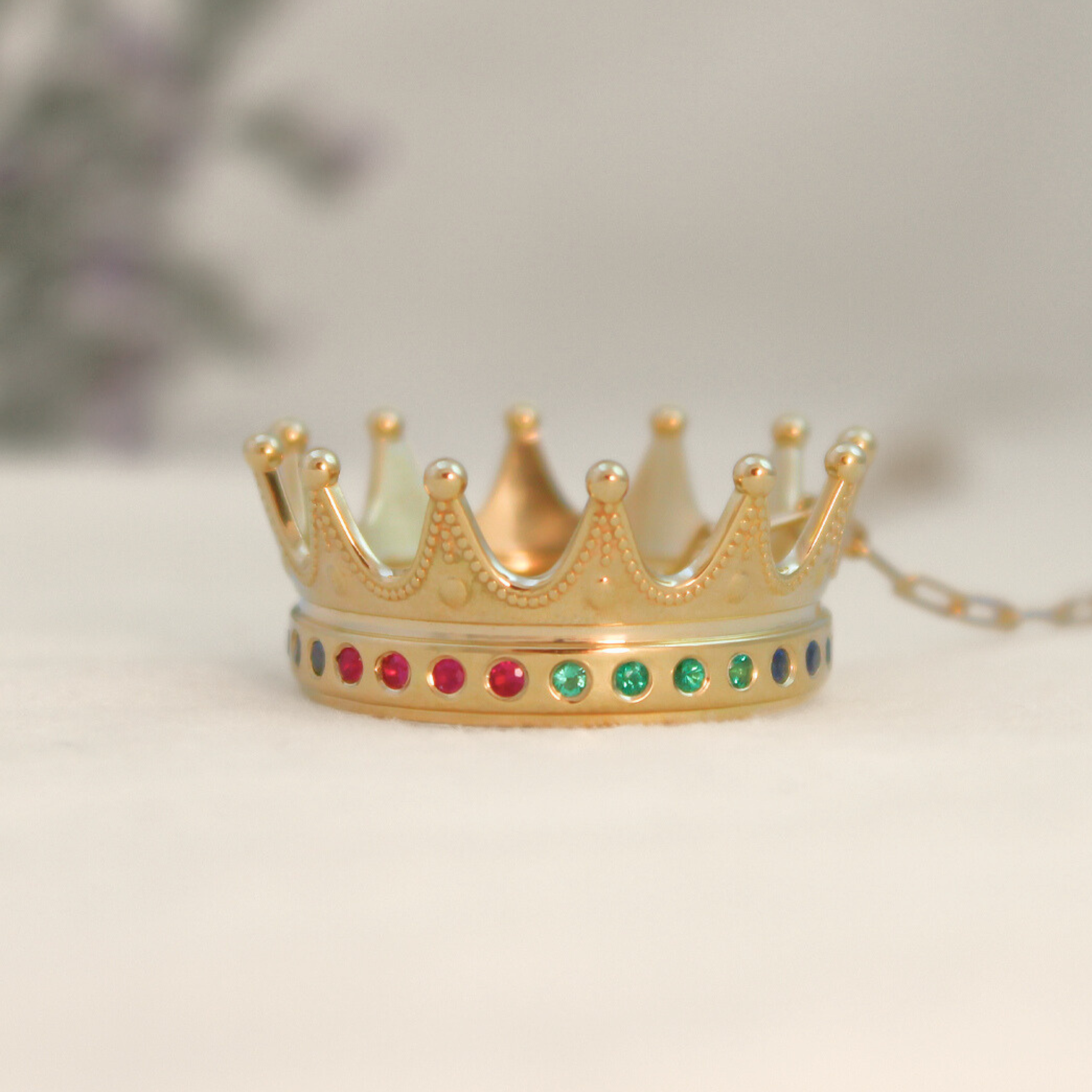 Pingente Coroa - Ouro 18k - Cravejado - DIAMANTES - RUBI - ESMERALDA - SAFIRA - GRANADA - AMETISTA