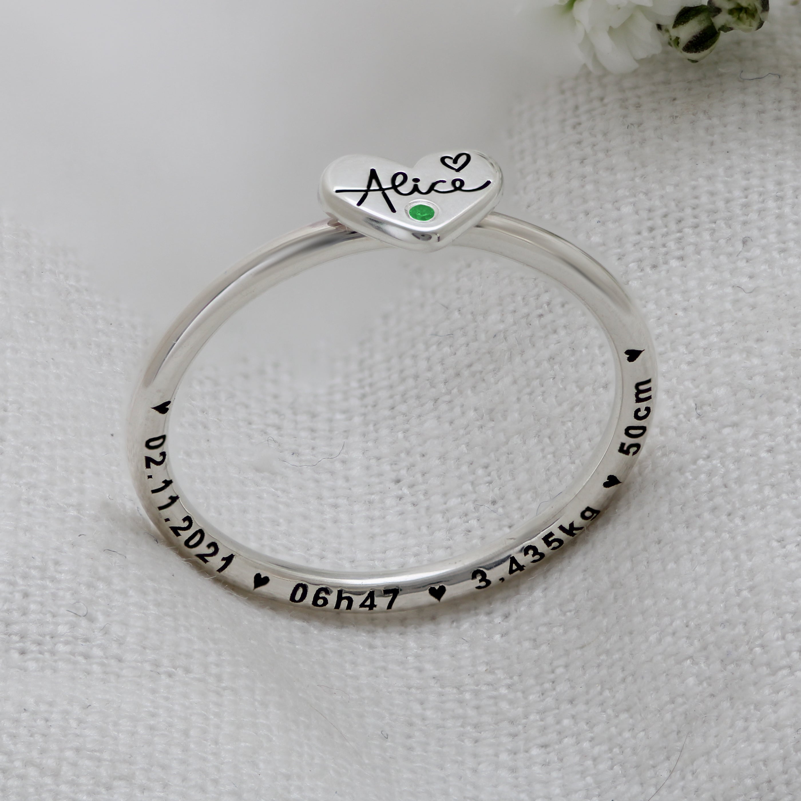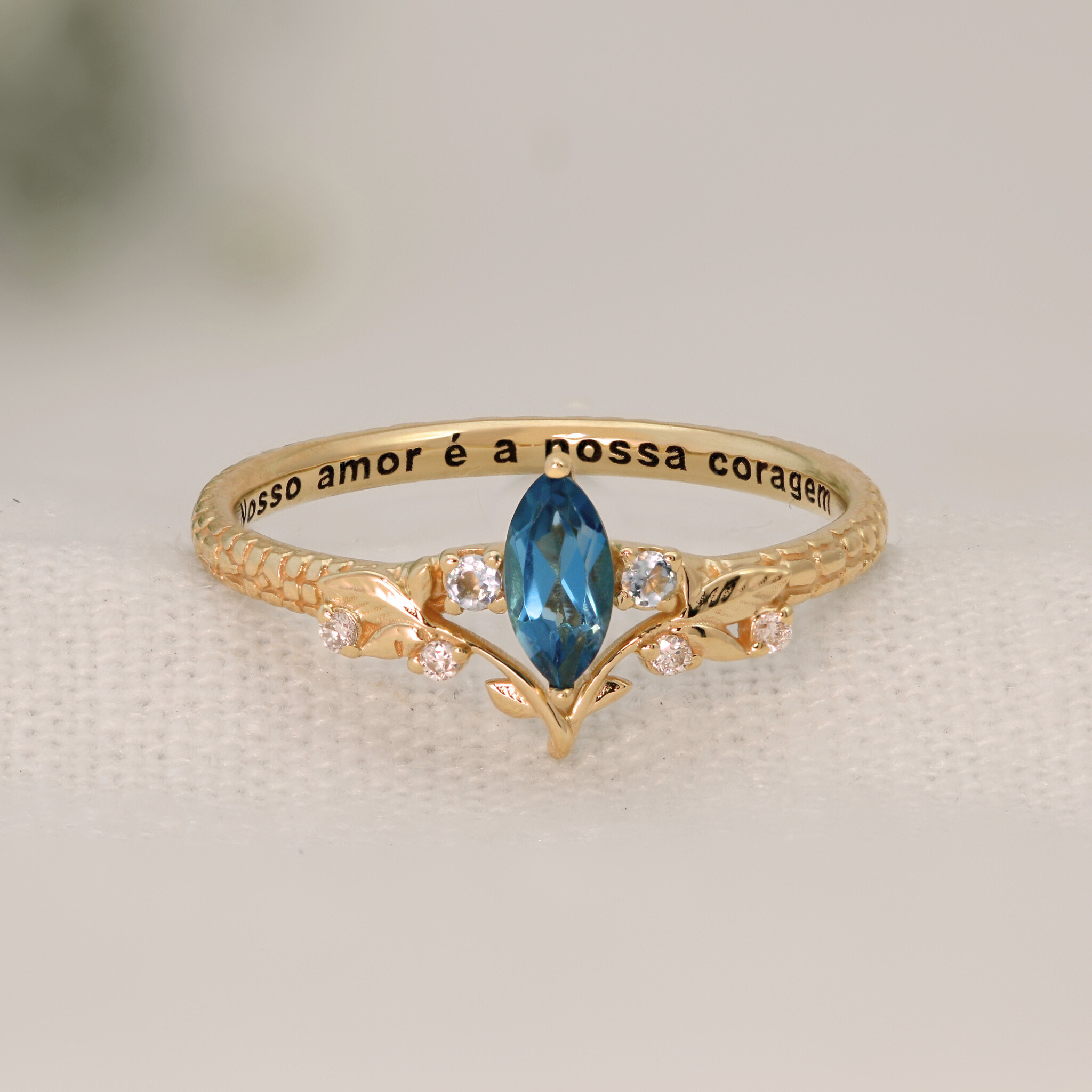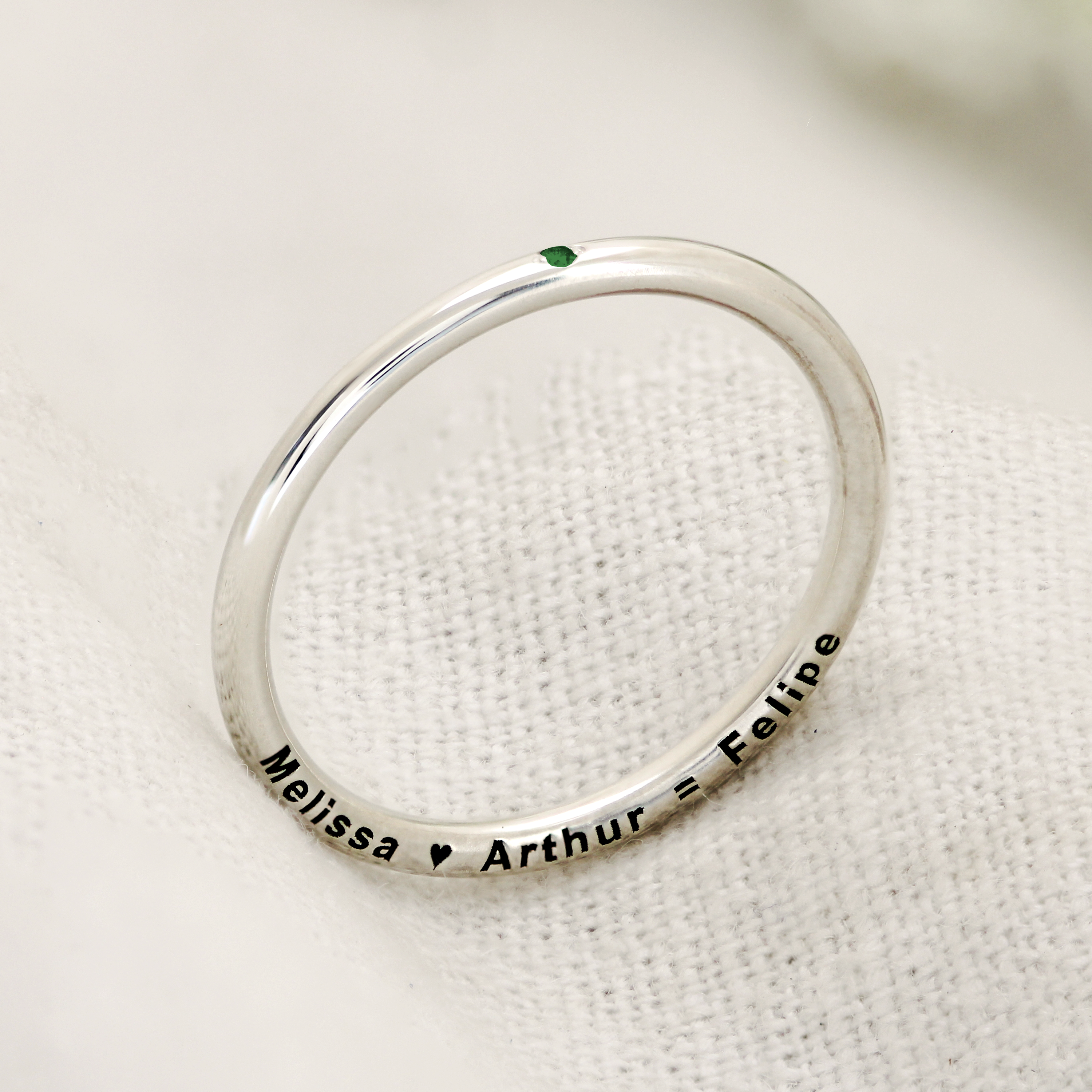 Anel personalizado de nome em ouro 18k - Momentos Esmeralda