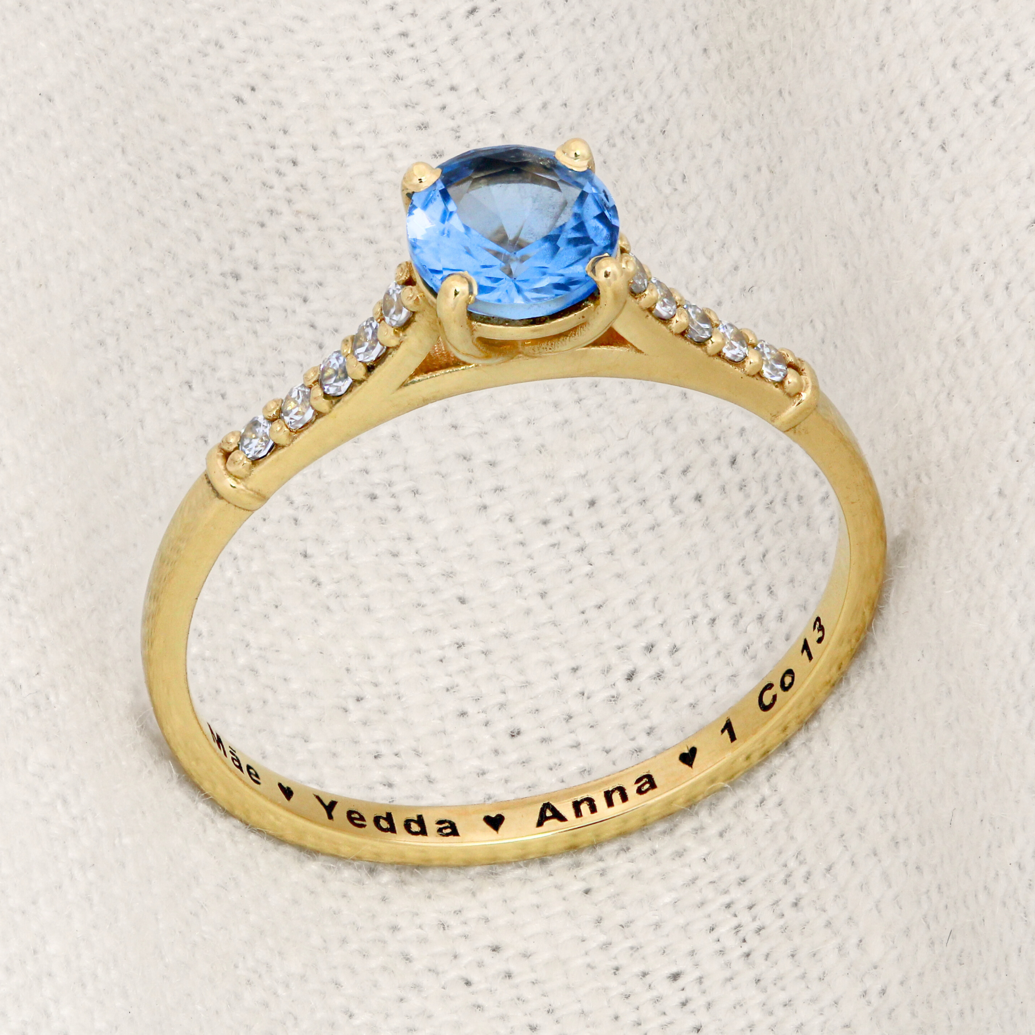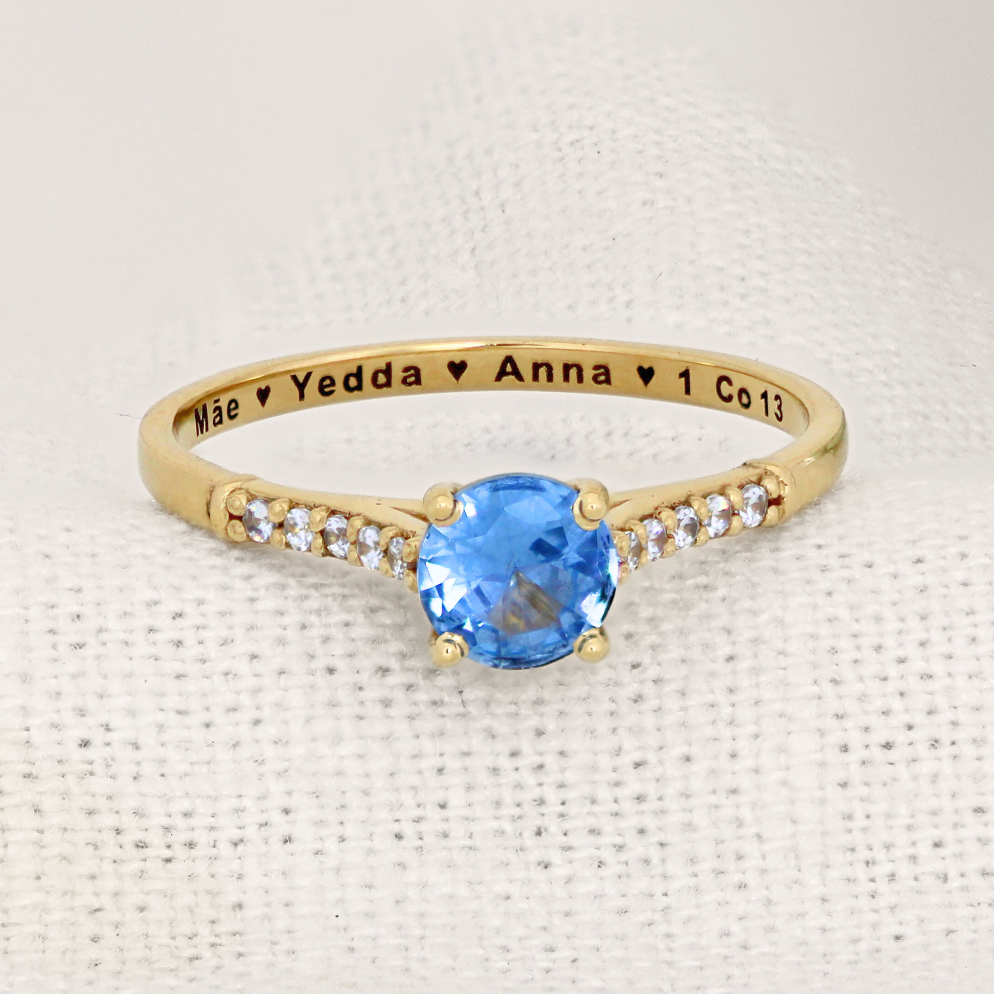 Anel Solitário Clássico - Ouro 18k - Zircônias Azul Claro e Incolores