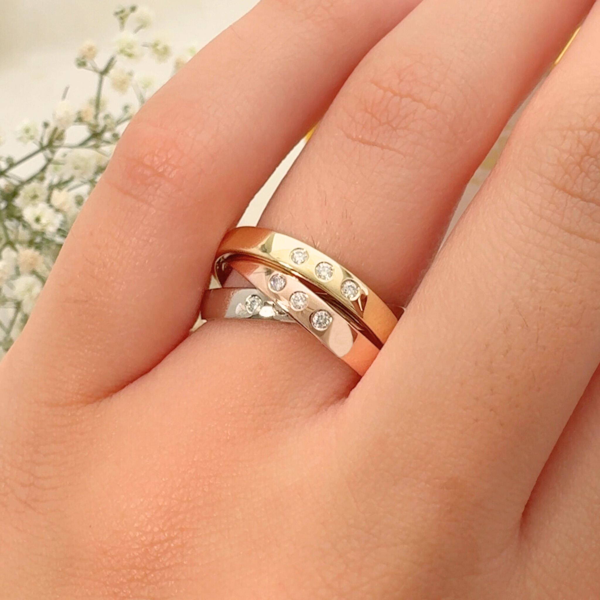 Em Prata 925, Ouro amarelo 18k, Ouro Rosé 18k e Ouro Branco 18k.
