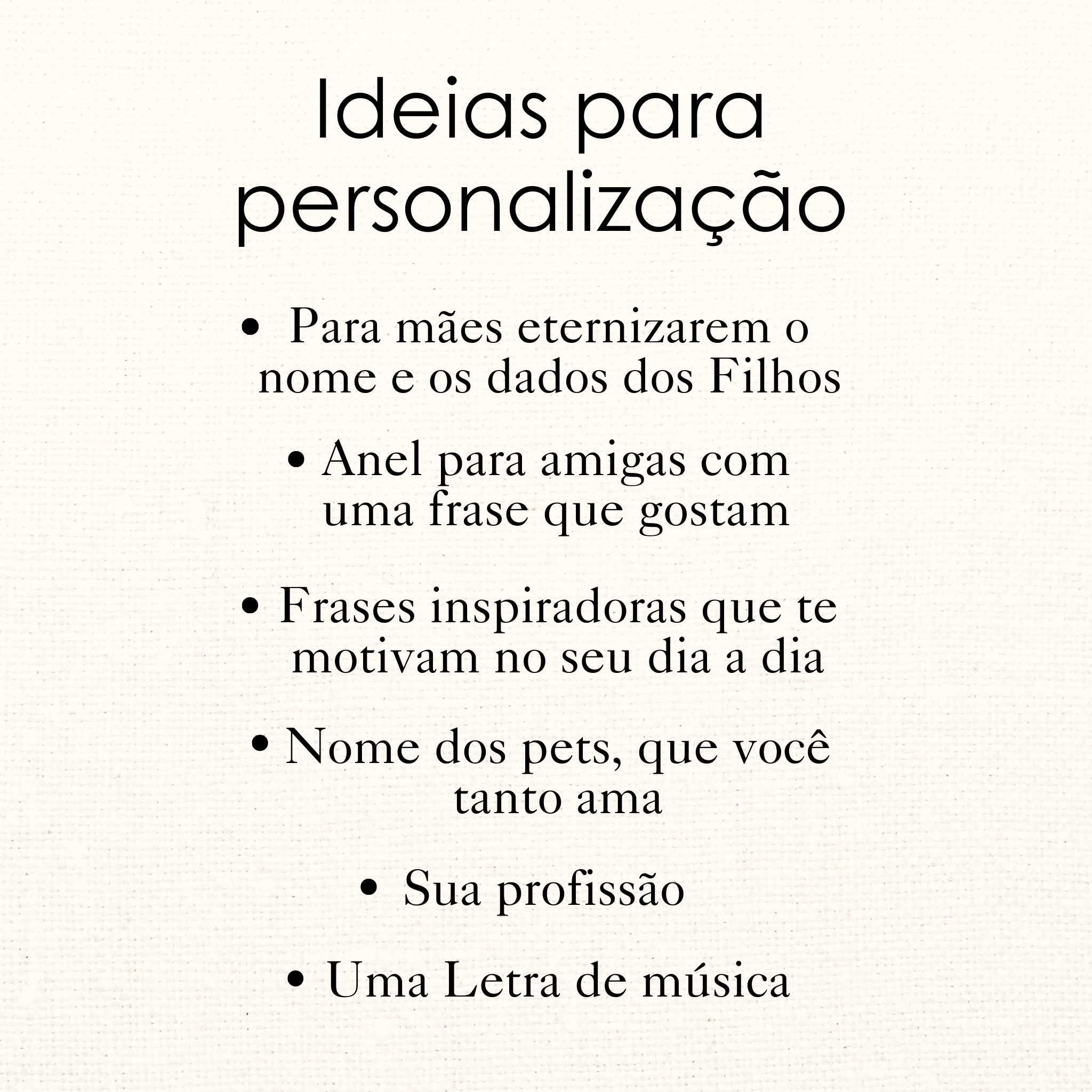 Você pode solicitar personalizações extras, como a gravação de símbolos especiais ou a cravação de pedras adicionais. Para mais informações, entre em contato conosco! Clique no Botão verde de Whatsapp abaixo.